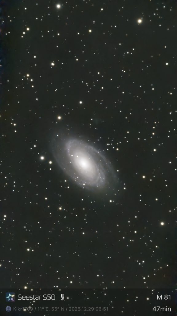 Fra kernen strækker de elegante spiralarme sig ud i rummet som kosmiske hvirvler. Armene er fyldt med lysende stjernehobe, mørke støvbånd og blålige områder, hvor nye stjerner dannes af kolde skyer af gas og støv. Disse kontraster gør M81 særligt let at genkende og til et yndet mål for både professionelle astronomer og amatørobservatører. Galaksen er en af de klareste uden for Mælkevejen og har været studeret i århundreder, hvilket har givet forskere værdifuld viden om, hvordan spiralgalakser formes, udvikler sig og påvirkes af deres omgivelser.