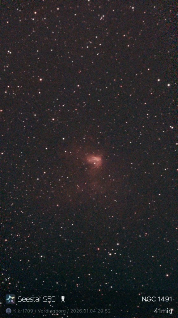 NGC 1491 er en kompakt, men energirig emissionsnebulose beliggende omkring 9.000 lysår fra Jorden i stjernebilledet Perseus. Nebulosen er et aktivt stjernedannende område i Mælkevejen og fremstår på billeder som en koncentreret glød af ioniseret gas omgivet af mørkere støvstrukturer. Selvom NGC 1491 er mindre kendt end andre store nebuloser, rummer den intense fysiske processer, som gør den særligt interessant.